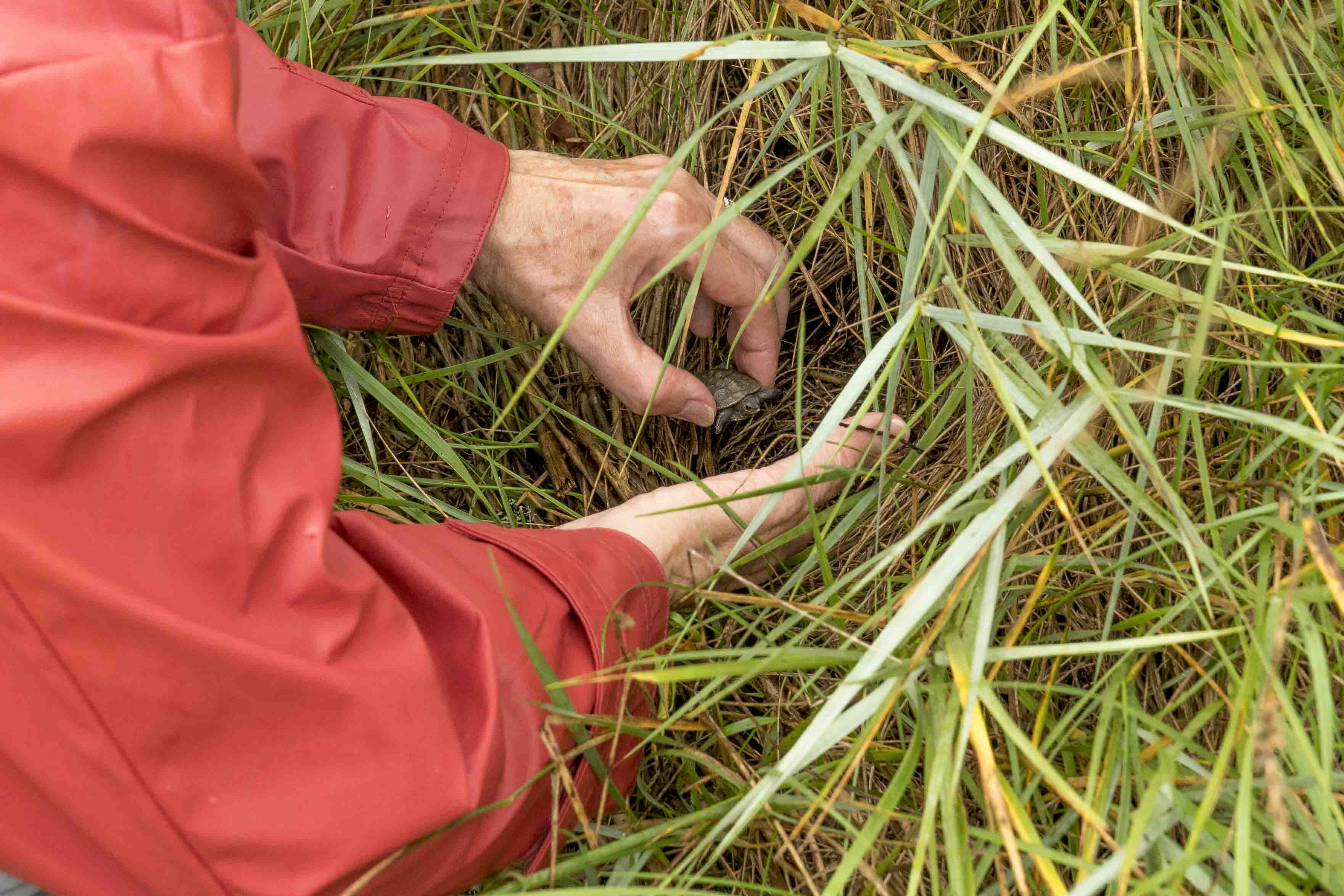 Bob said that these small terrapins will likely go into hibernation in the coming month due to dropping temperatures at night. In the coming years the terrapin will eat shrimp, clams, crabs, mussels, and periwinkle snails, helping them grow in size. Maturity in males is reached in 2–3 years at around 4.5 inches in length; it takes longer for females: 6–7 years at a length of around 6.75 inches. While the males never come out of the water, with any luck the female terrapin hatchlings released will return to the restored White’s Lane nest sites and lay another batch of eggs, steadily increasing the size of the terrapin populations within the Pleasant Bay system.
