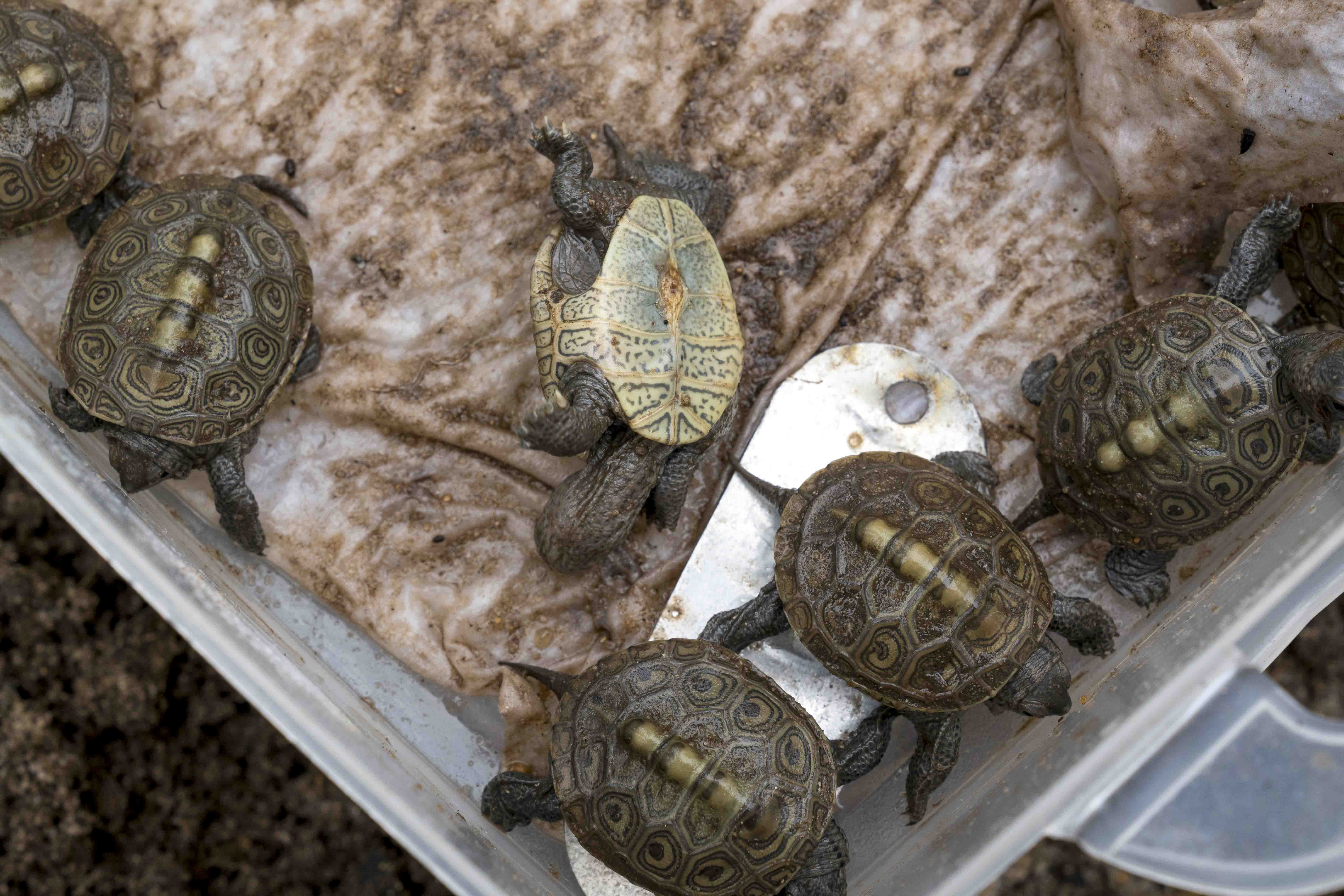 White’s Lane Conservation Area at Henson’s Cove serves as an oasis for nesting Northern dimaondback terrapins(Maclemys terrapin), a state-listed threatened species.  The multi-year effort of long hours and heavy labor restoring and maintaining the habitat, along with dedicated  volunteerism is paying off.  Diamondback terrapin females are recognizing the site as a suitable nesting spot and the number of nests has been increasing every year since this project began in 2009.