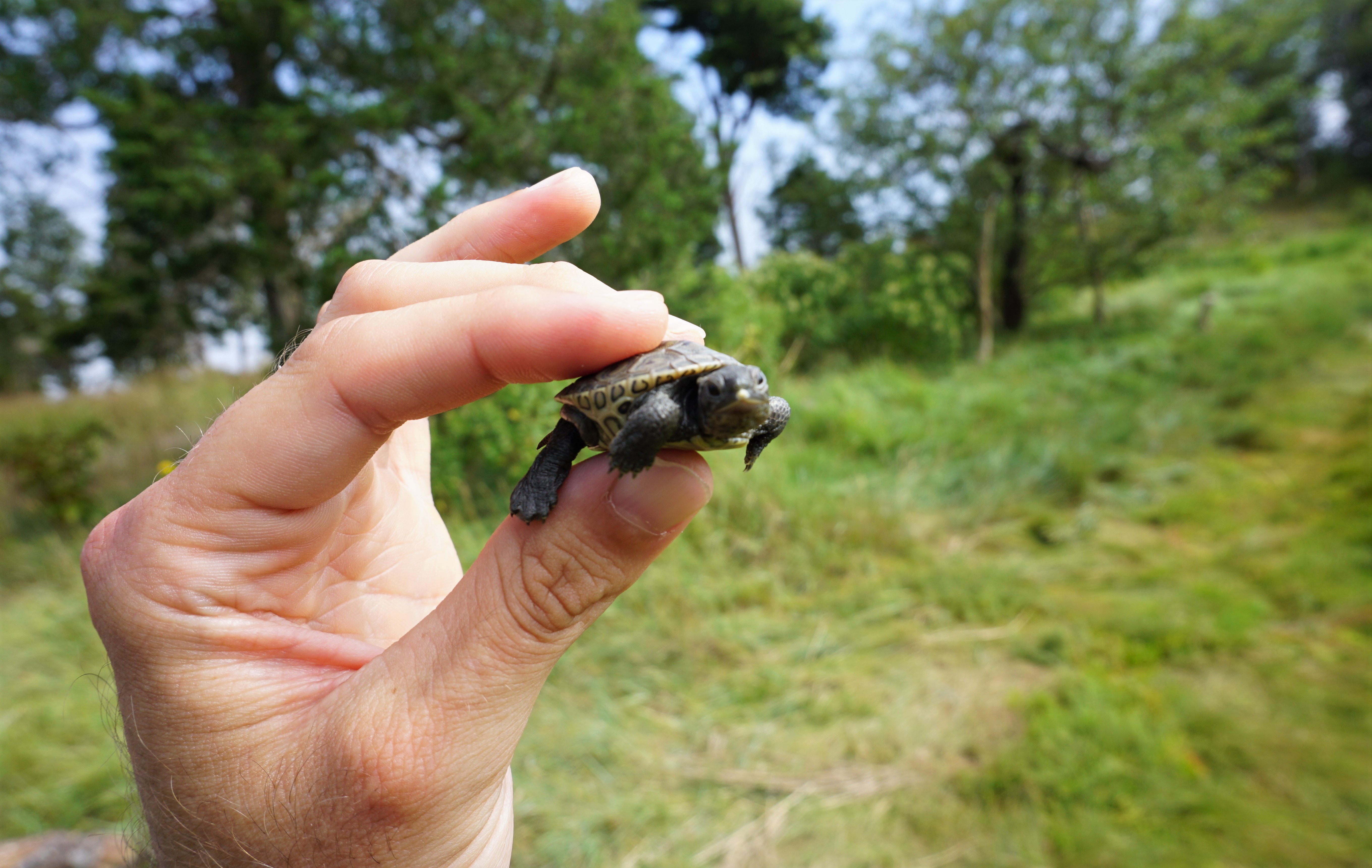 White’s Lane Conservation Area at Henson’s Cove serves as an oasis for nesting Northern dimaondback terrapins(Maclemys terrapin), a state-listed threatened species.  The multi-year effort of long hours and heavy labor restoring and maintaining the habitat, along with dedicated  volunteerism is paying off.  Diamondback terrapin females are recognizing the site as a suitable nesting spot and the number of nests has been increasing every year since this project began in 2009.